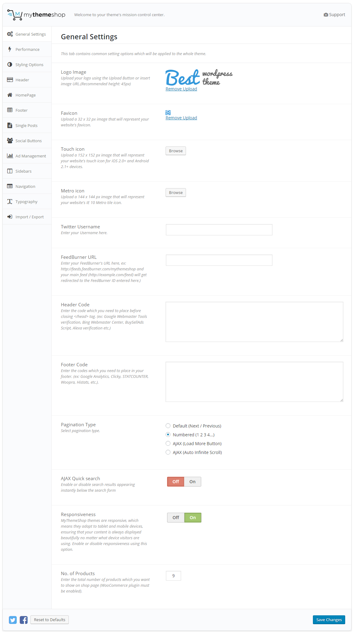 Sidebar Settings