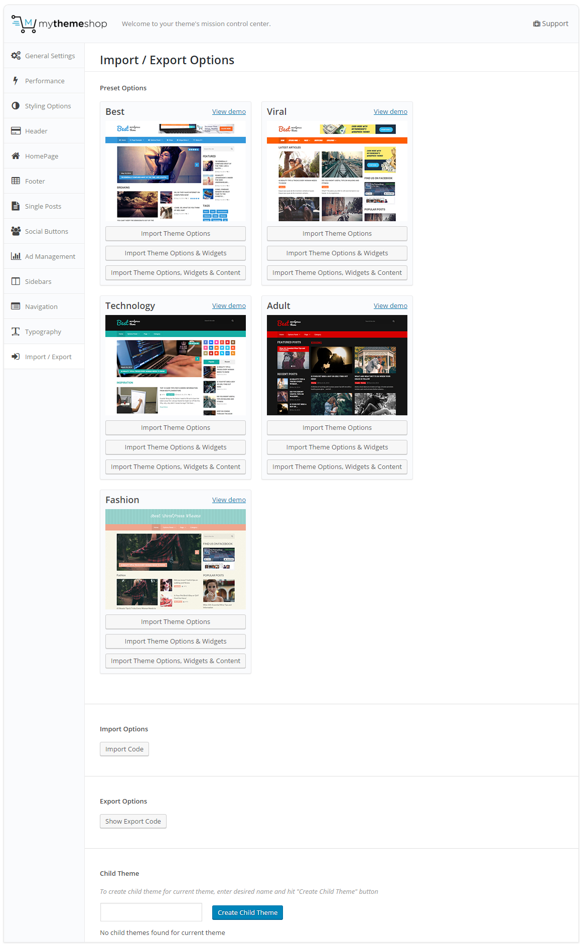 Import/Export Settings