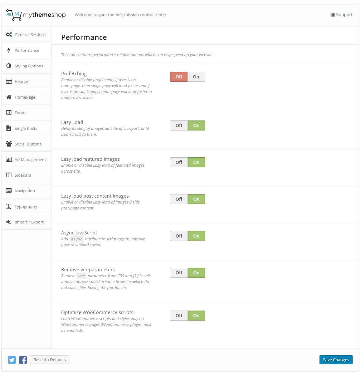 Social Button Settings